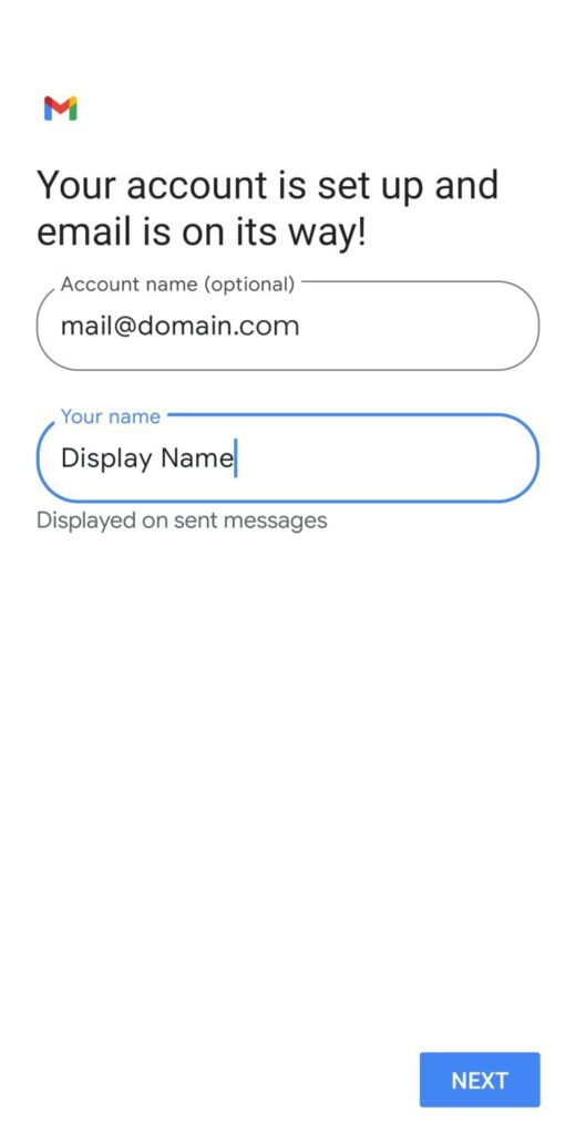 - Enter your account and display name. Then, tap NEXT.